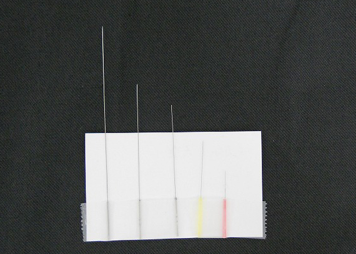 鍼の長さも、15ミリ~90ミリまで用意しています。太さも、0.12ミリ~0.30ミリまで用意しております。これらの鍼を、患者さまの状態によって、使い分けていきます。